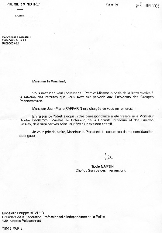 ROBIEN, ministre des Transport, 26 mai 2003. " Le régime de retraite de la RATP, comme