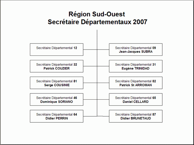 Cliquer sur les cadres des organigrammes et sur les noms de département pour accéder aux coordonnées de vos représentants FPIP